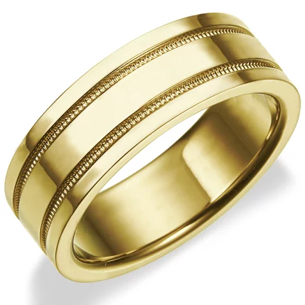 マリッジリングとしてではなく、右手人差し指用のファッションリングとしての購入です。クチコミが1件もなく「どうなんだろう?」という思いも多少はありましたが、こちらを選んで正解でした。18金で平打ちで幅は広めで…。でも普通の平打ちは嫌でなかなか気に入ったデザインの物がありませんでした。ですので、こちらの綺麗なダブルミルグレインのリングを見付けた時には「これだ!」と思い即注文しました。しっかりと重さもあり(10グラムありました)厚みもあり、指通りも滑らか、顔が映り込む程の鏡面仕上げでとても美しいです。指が浮腫みやすいのと平打ちリングという事を考えてサイズは1つ上にしましたが問題なさそうです。手が汚くて申し訳ないですが、写真はどなたかの参考になればと思います。