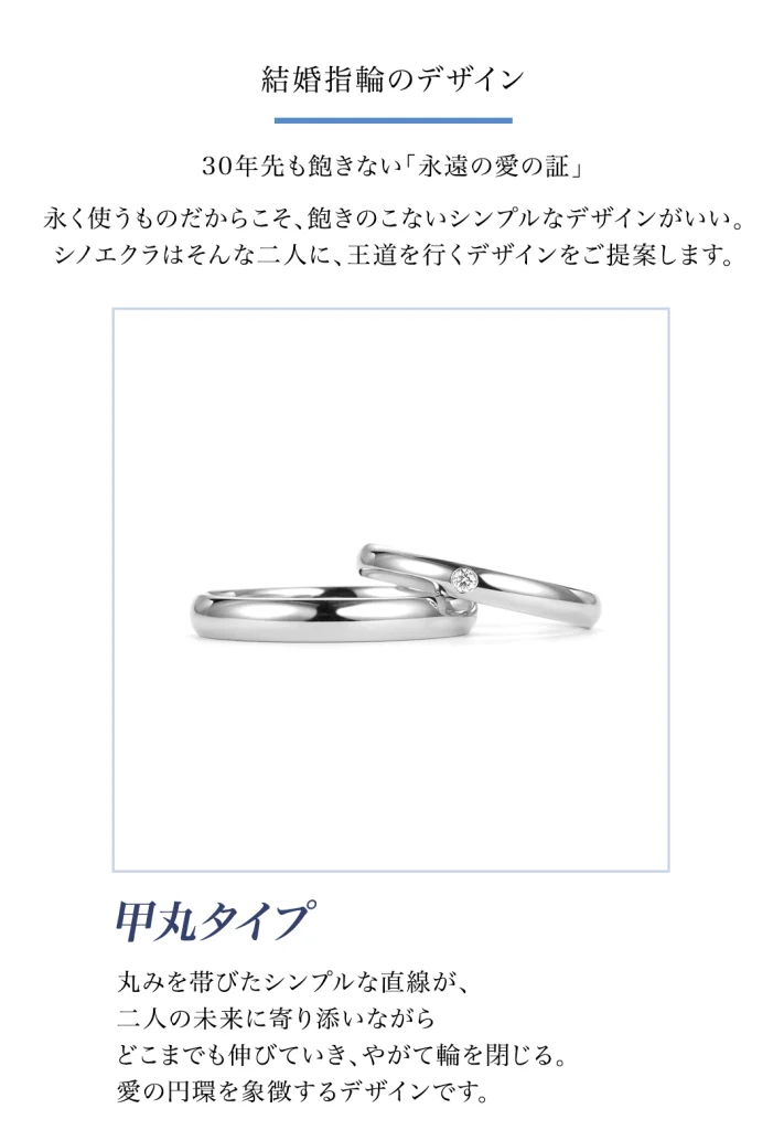 アメリカブランドの結婚指輪だと日本人にはサイズが合わないことも。シノエクラの結婚指輪は日本人に合わせたサイズを造っているので、よりフィットした結婚指輪を手に入れることができます。