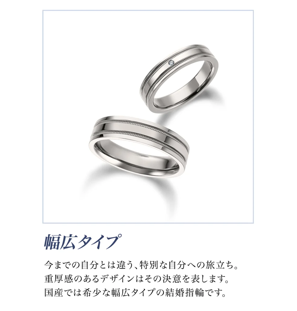 国産では希少な幅広タイプの結婚指輪です。