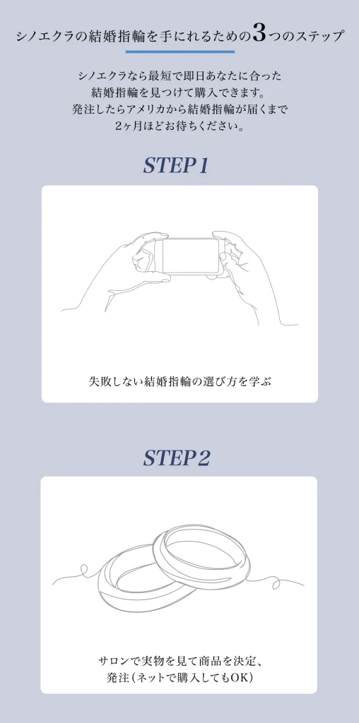 シノエクラなら最短で即日あなたに合った結婚指輪を見つけて購入できます。